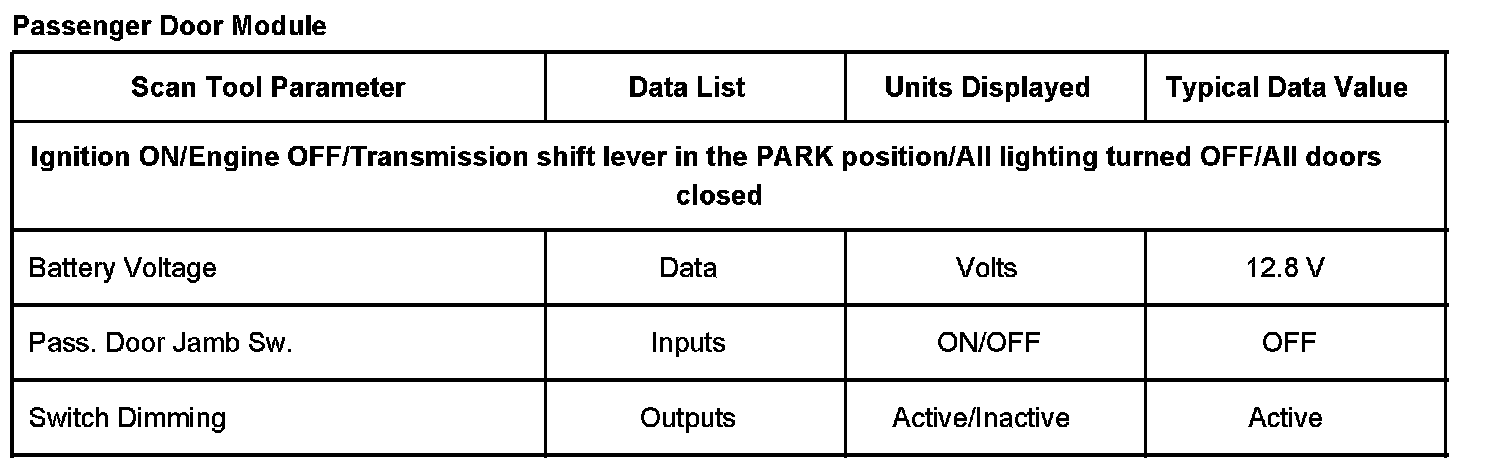 Scan Tool Data List - Passenger Door Module: