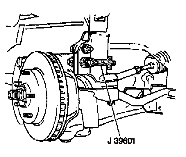 12. Using J 39601 set camber to specification. It may be necessary to remove one of the arms of the J39601 in order to install it.