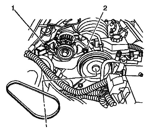 1. Loosen the auxiliary generator mounting bolts (1, 2).