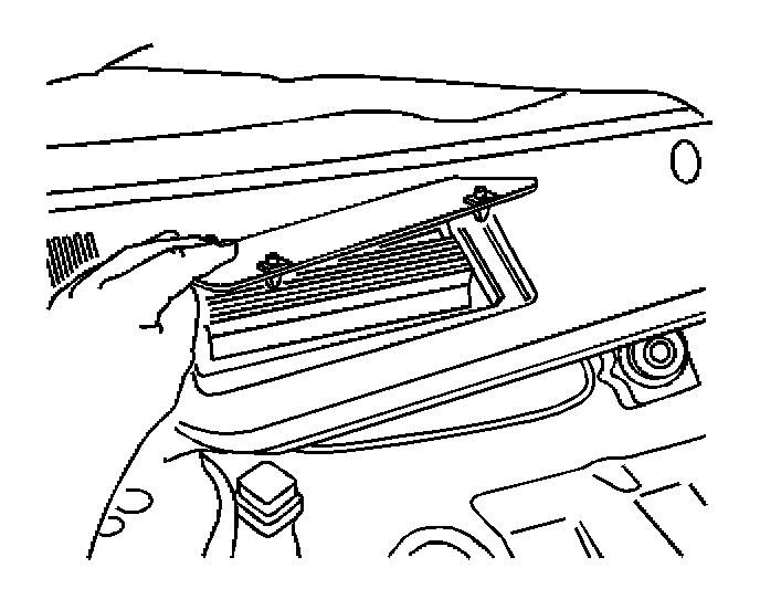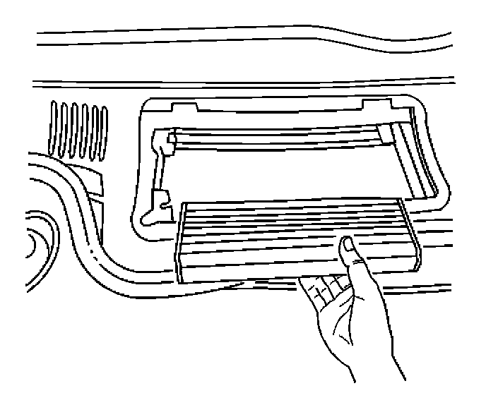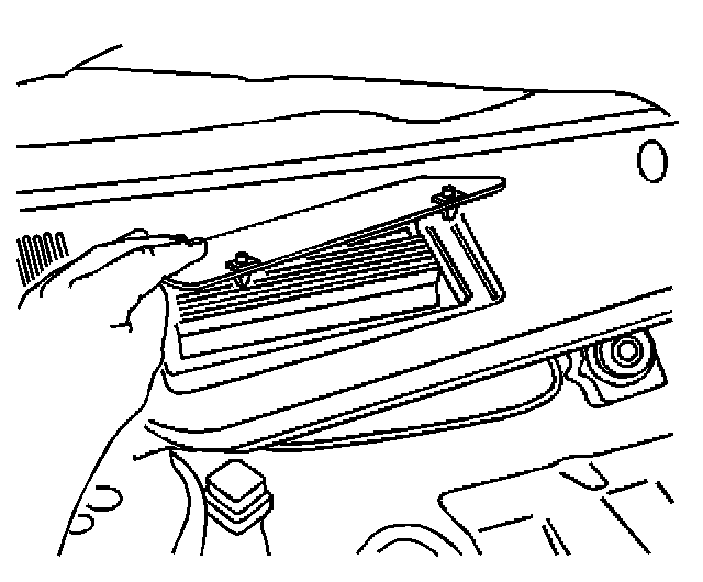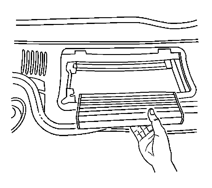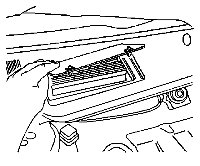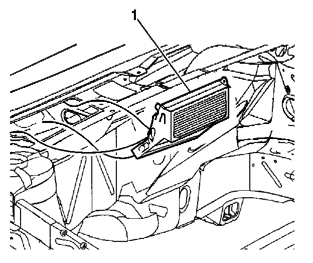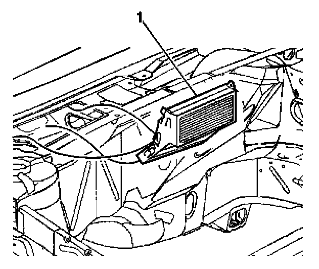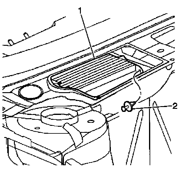 1. Flex the passenger side of the HVAC air filter housing (1) in order to allow the air filter to slide into the housing.