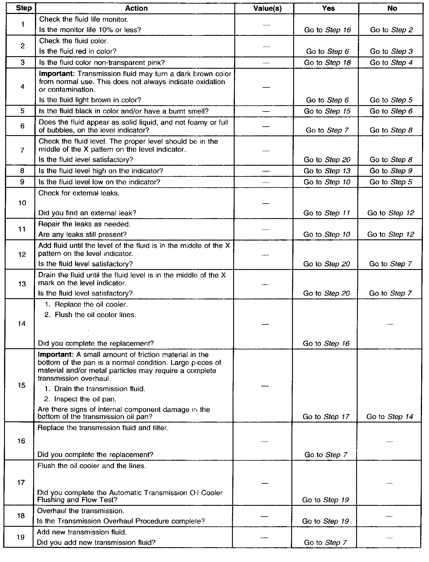 Transmission Fluid Checking Procedure