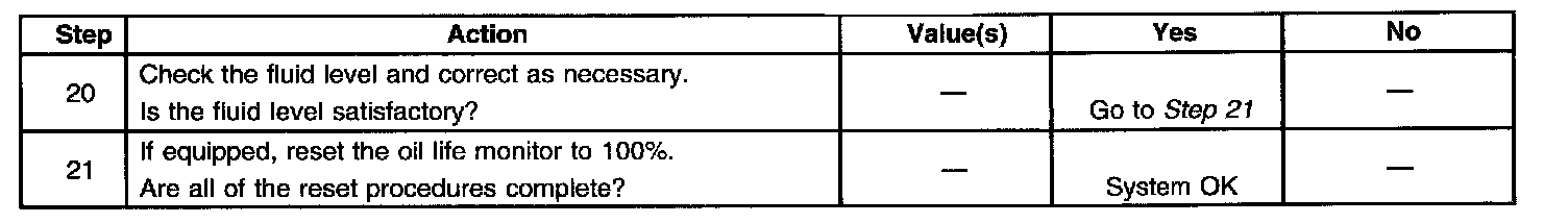 1. Start the engine and operate the vehicle for 15 minutes or until the transmission fluid reaches an operating temperature of 82 - 93°C (180 - 200°F).