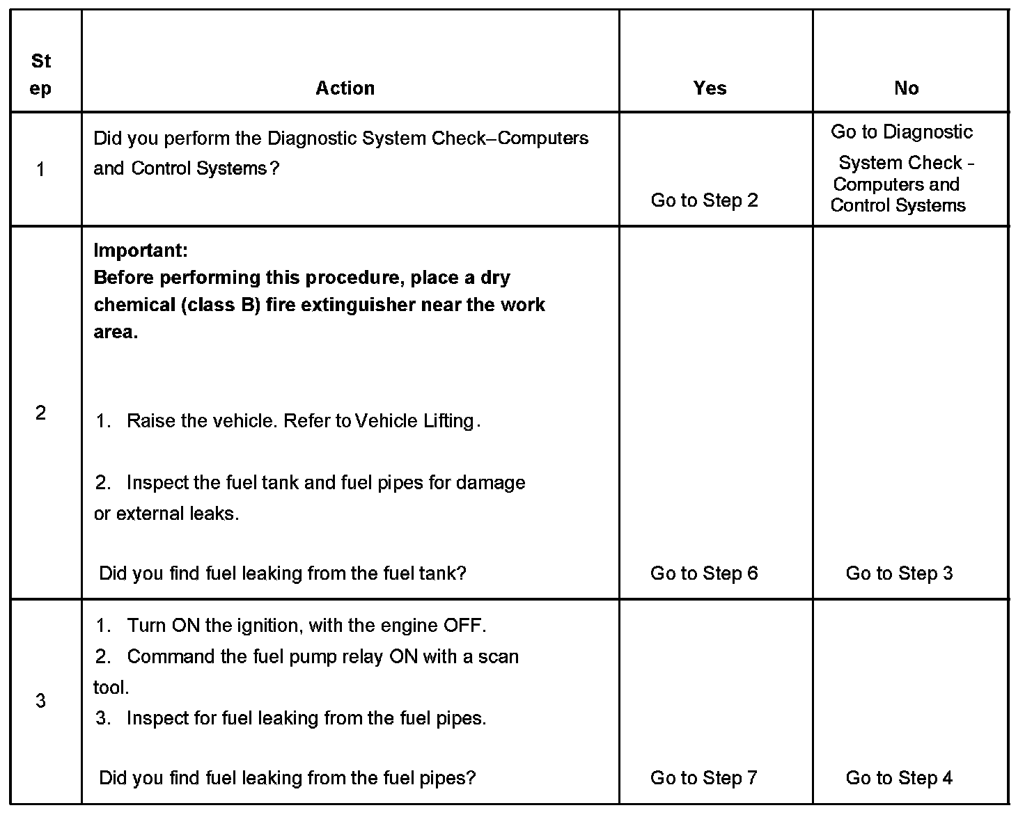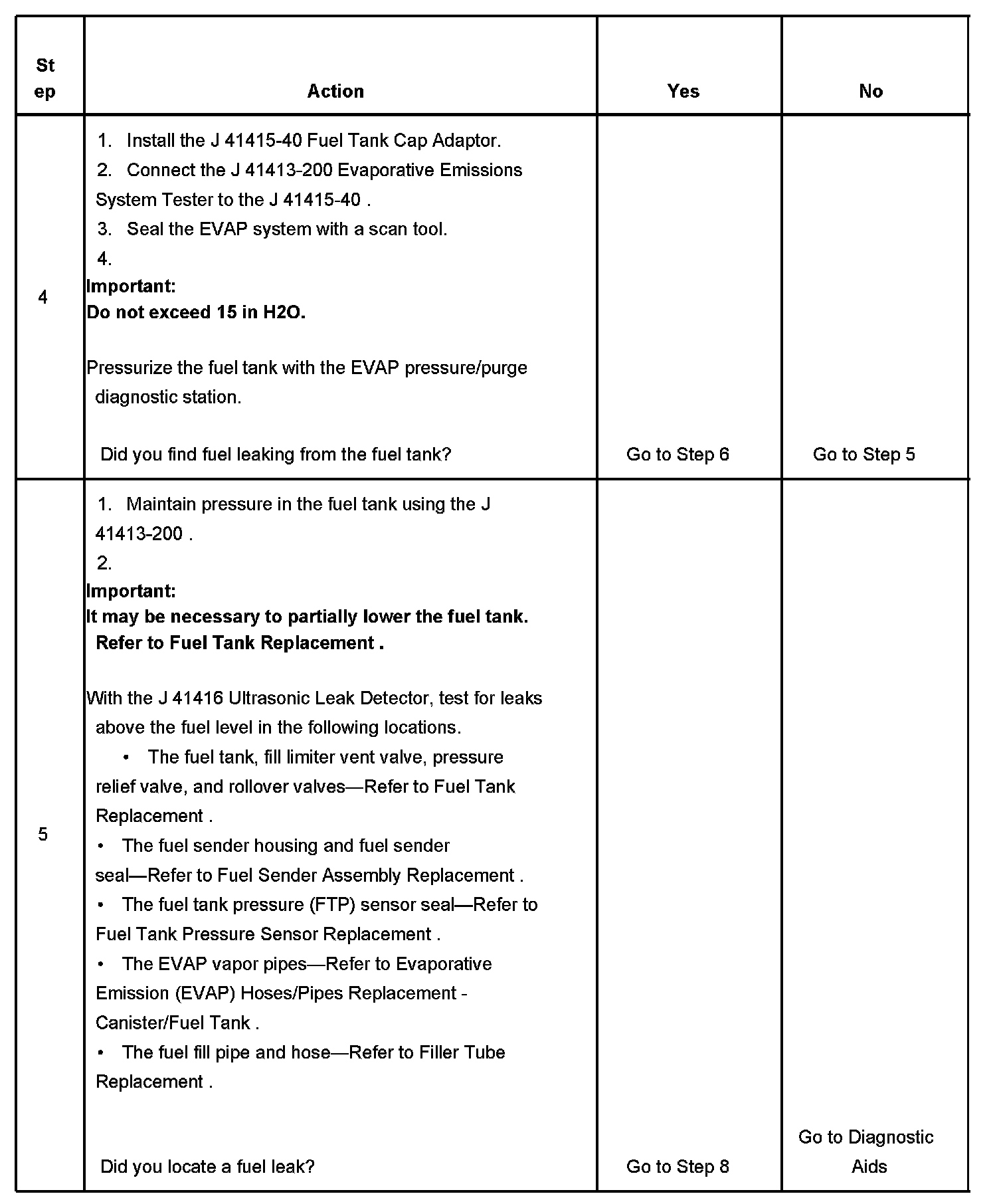 4. This step tests for fuel leaks below the fuel tank fuel level.
