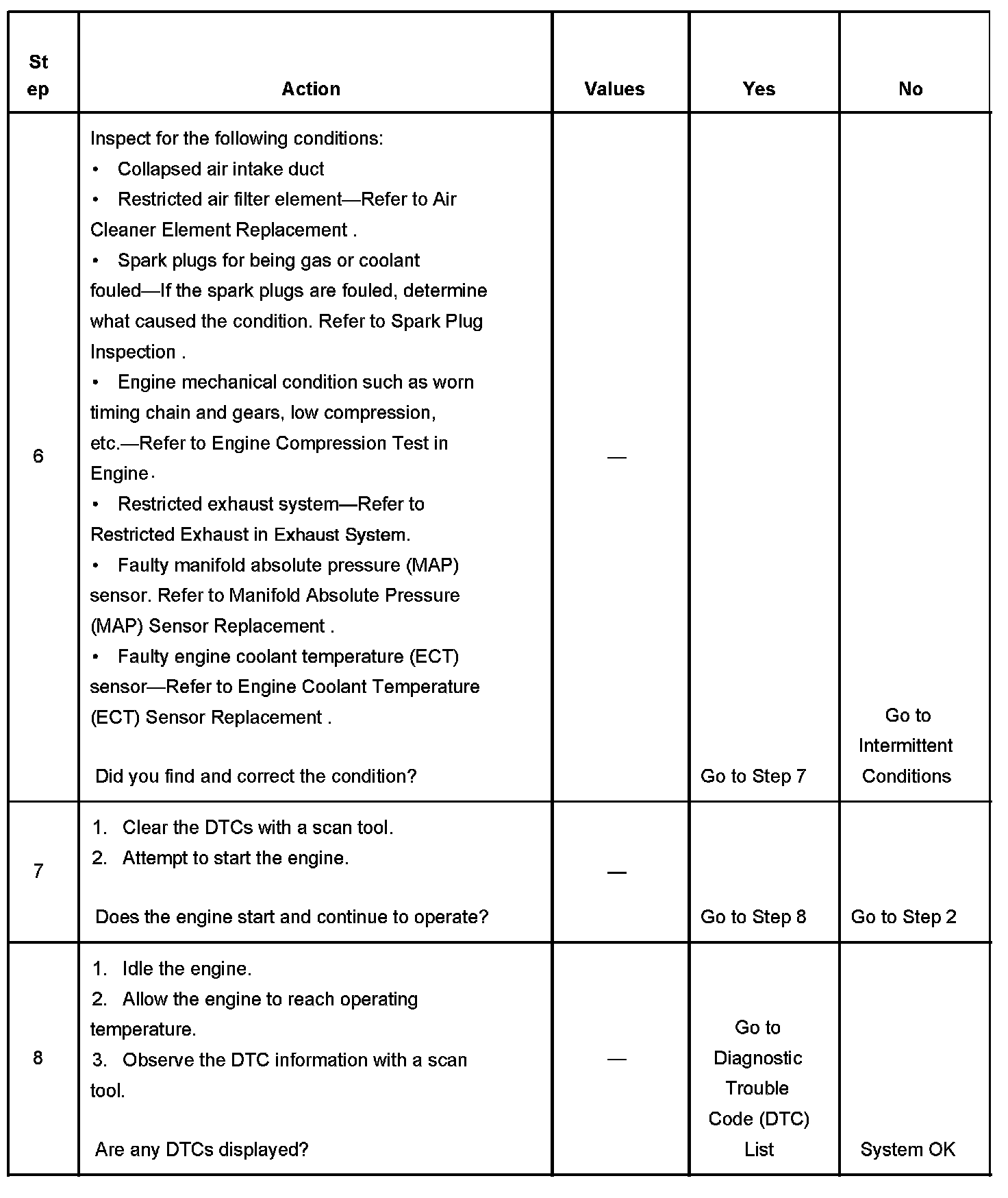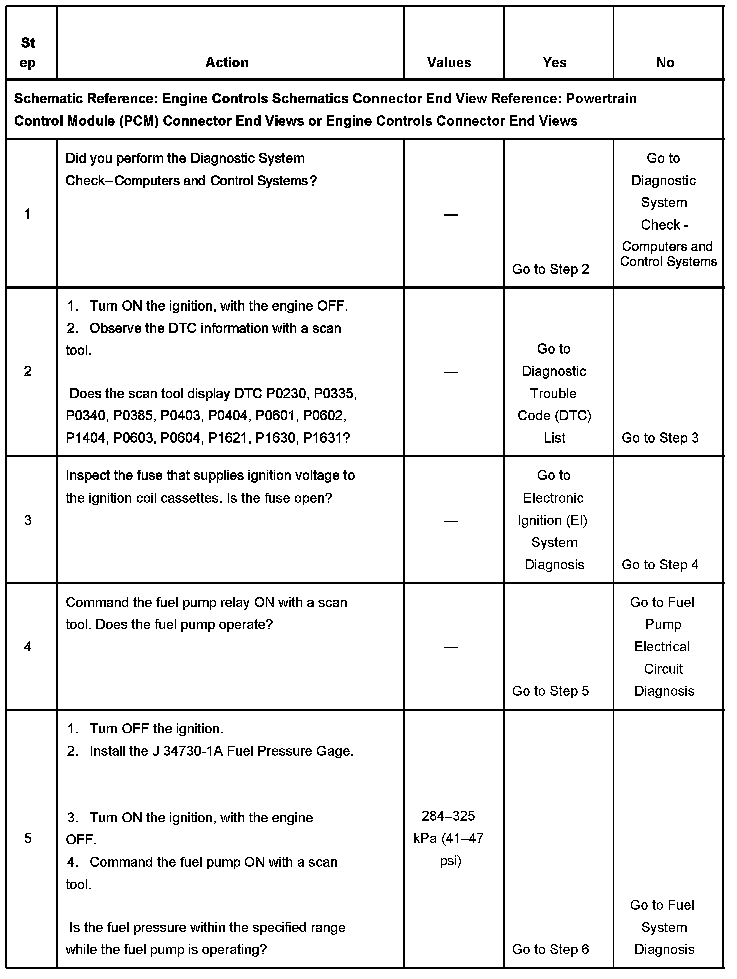 The Engine Cranks But Does Not Run diagnostic table assumes the following: