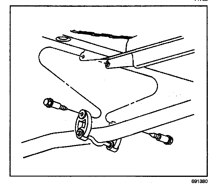5. Remove the bolts securing the center exhaust hangers to the rear suspension support brackets.