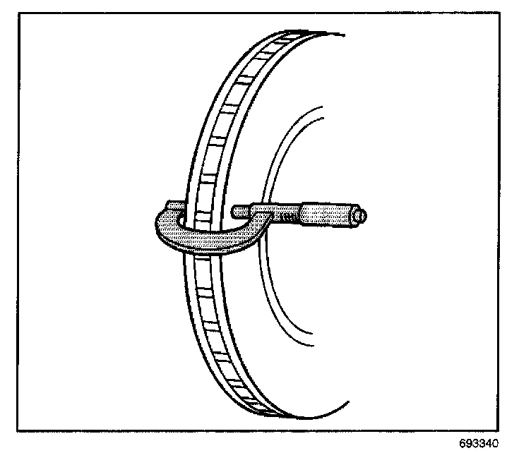 6. After each successive cut, inspect the brake rotor thickness. Refer to Brake Rotor Thickness Measurement.