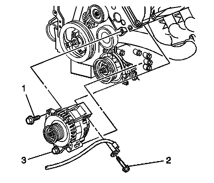 7. Loosen the lower generator bolt (3).