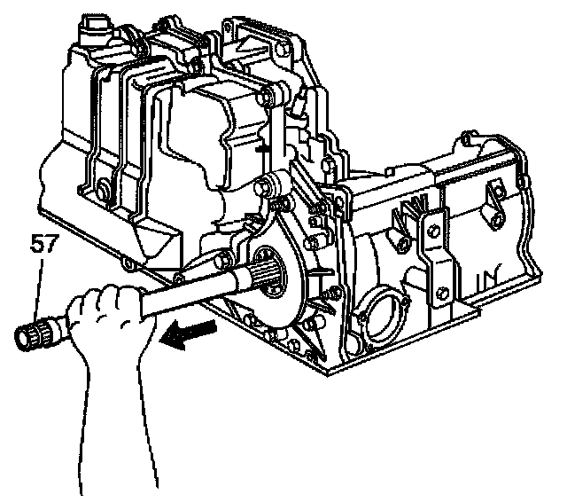 6. Remove the output shaft (57) through the opposite end of the case.
