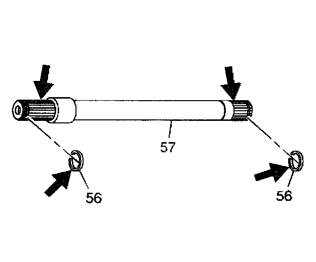 1. Inspect the output shaft (57) splines for burrs or damage. Inspect the snap rings (56) for overexpansion.
