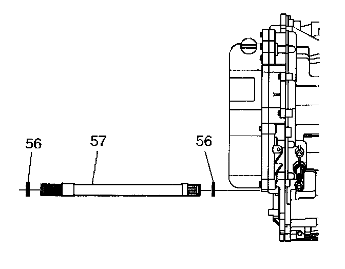 2. Install the snap rings (56) onto the output shaft and install the output shaft (57) from the channel plate side of the transmission.