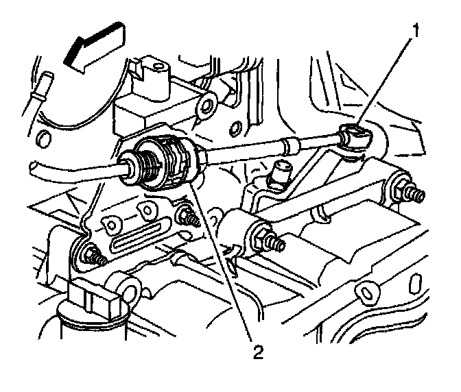 3. Disconnect the transaxle range selector cable terminal from the transaxle manual shift lever pin (1).