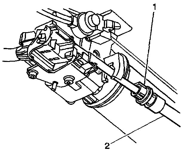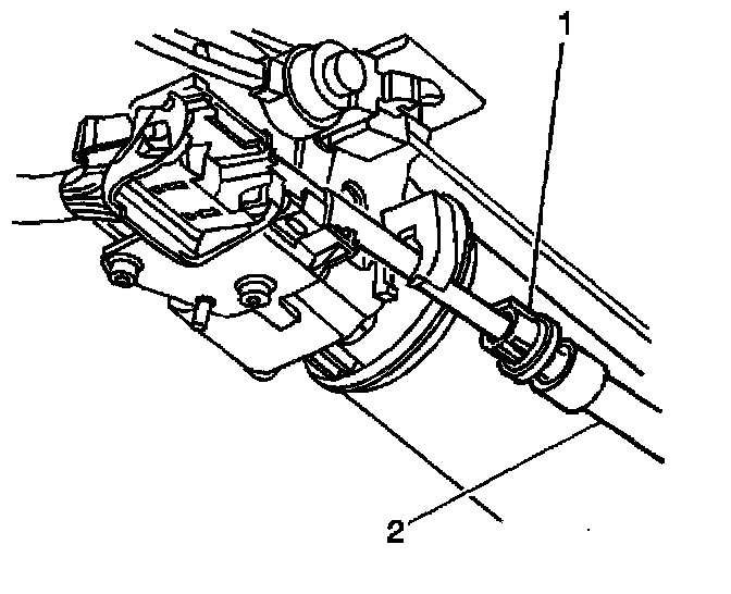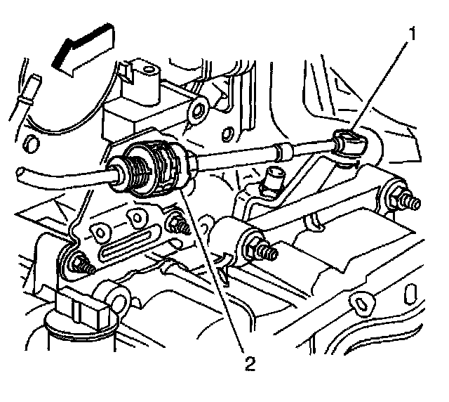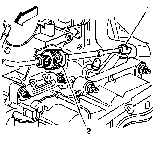 8. Press the locking tabs (1) inward in order to release the transaxle range selector cable (2) from the bracket.