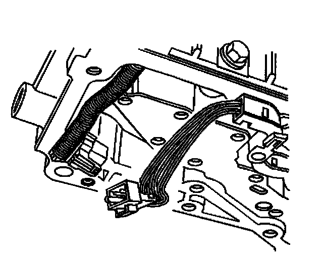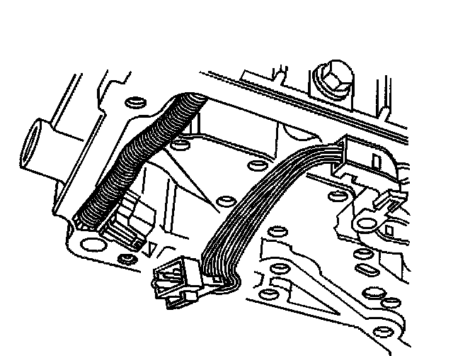 2. Remove the bolts from the oil transfer plate and the wire harness extension retaining clip.