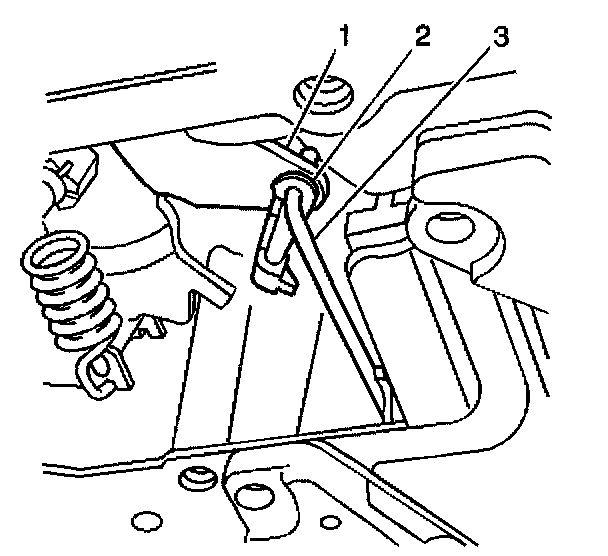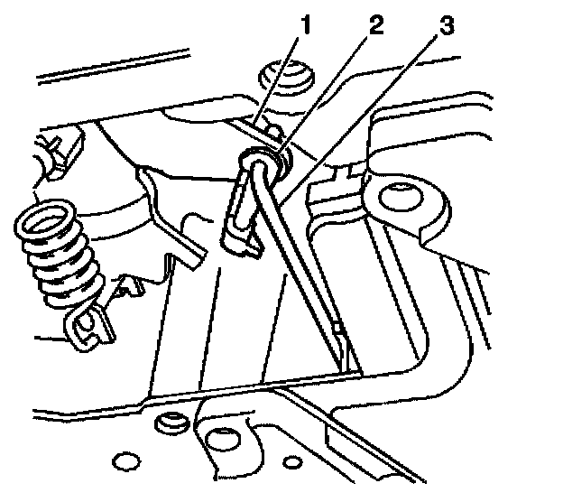 8. Insert the manual valve link (3) into the inside detent lever (1). Clip the manual valve link retainer (2) onto the manual valve link (3).
