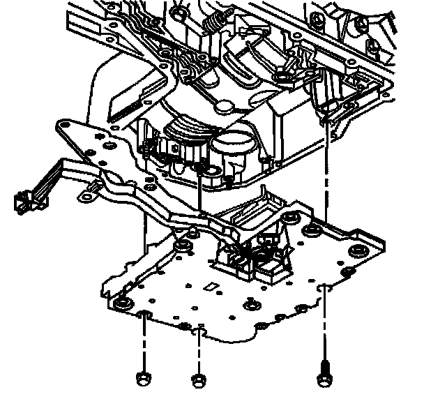 2. Install the lower valve assembly (consisting of the channel plate, control valve body, accumulator assembly, and the wire harness extension) to the transaxle case as a single unit.