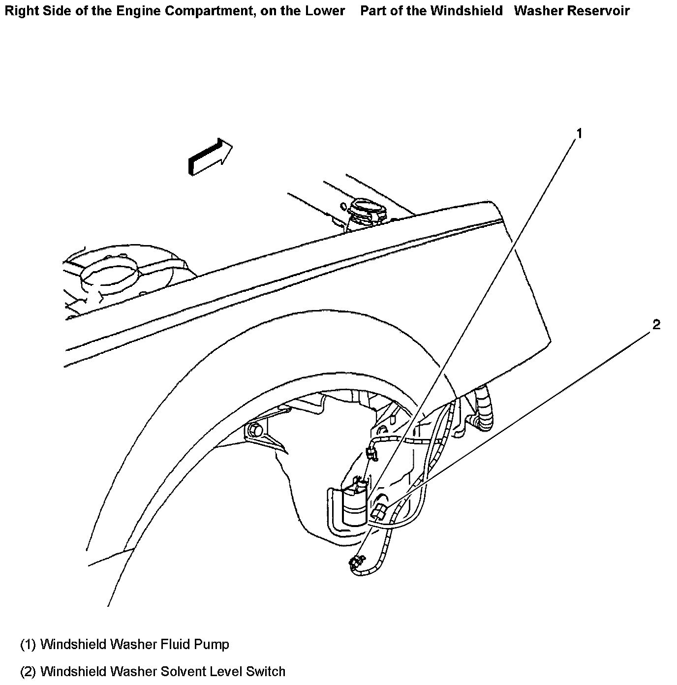Right Side Of The Engine Compartment, On The Lower Part Of The Windshield Washer Reservoir:
