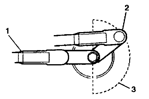 5. Pull or push on the wiper transmission linkage to rotate the wiper motor crank arm (2) from the park position (1) to the area opposite the park position (3).