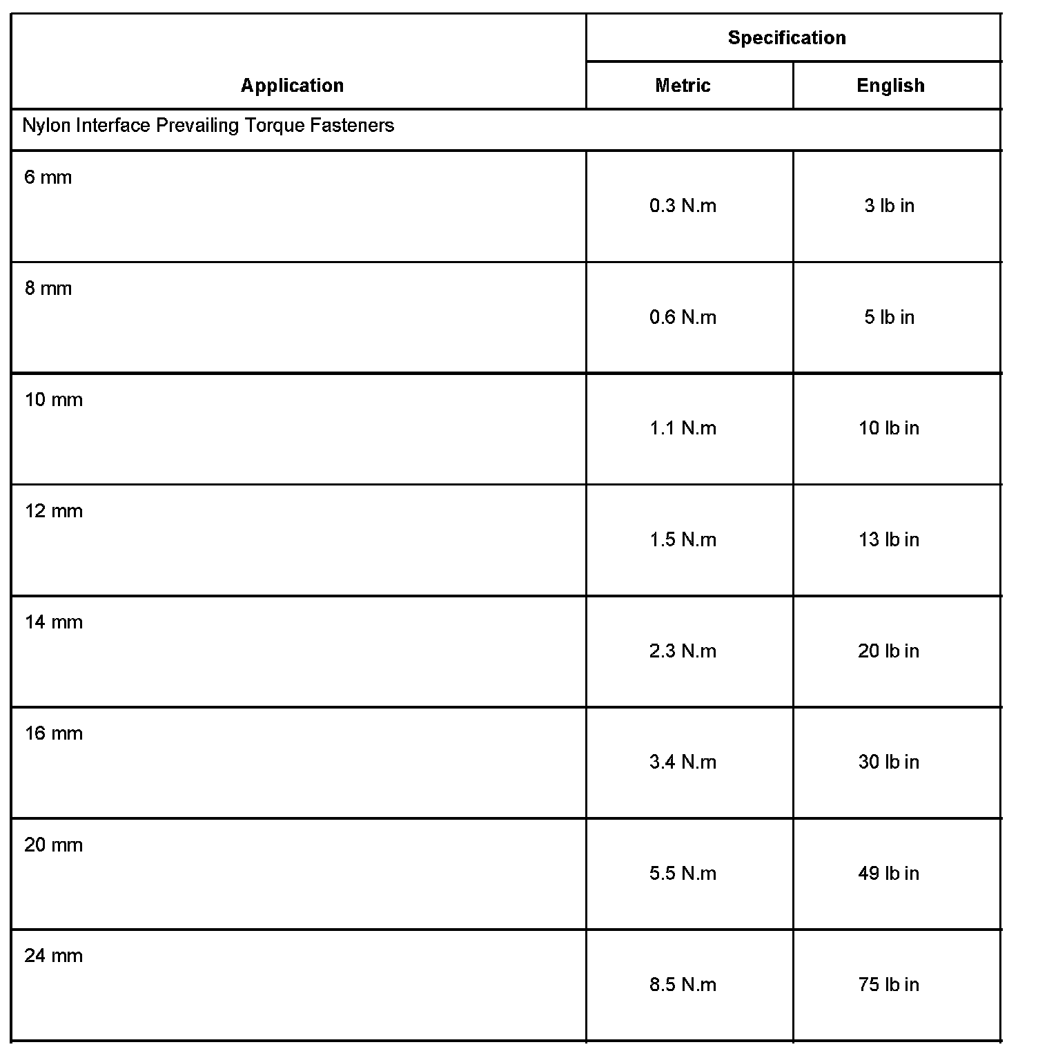 English Prevailing Torque Fastener Minimum Torque Development Part 1: