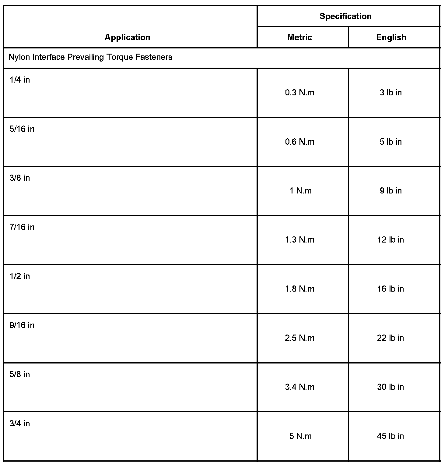 ENGLISH PREVAILING TORQUE FASTENER MINIMUM TORQUE DEVELOPMENT