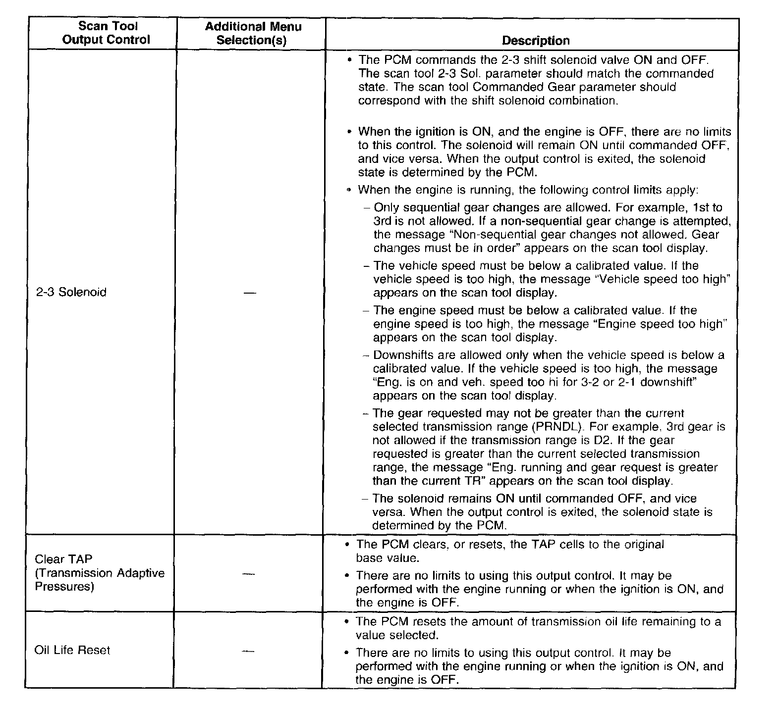 Scan Tool Output Controls