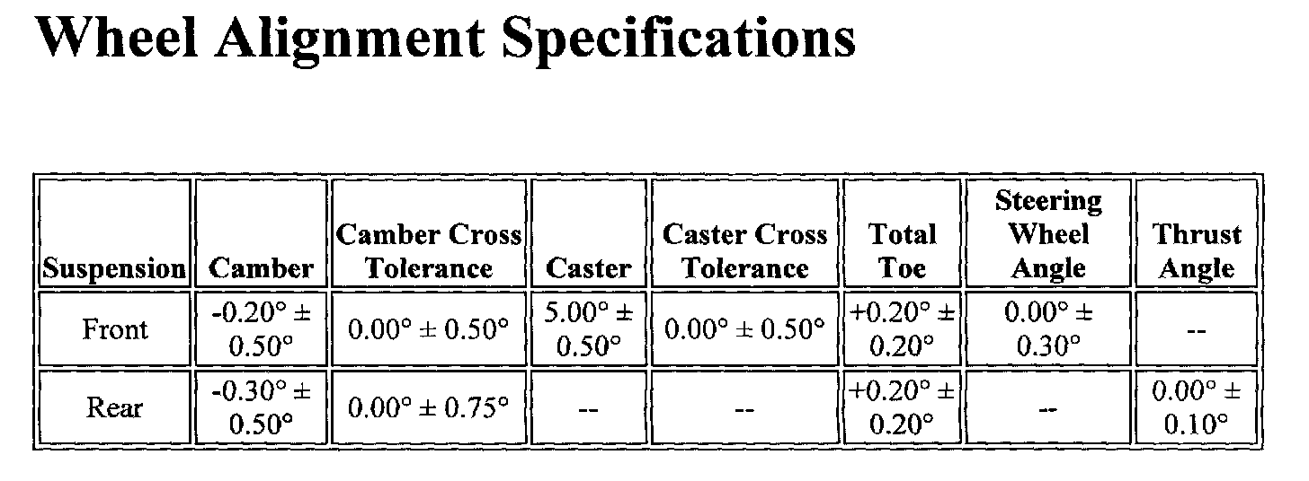 Wheel Alignment Specifications