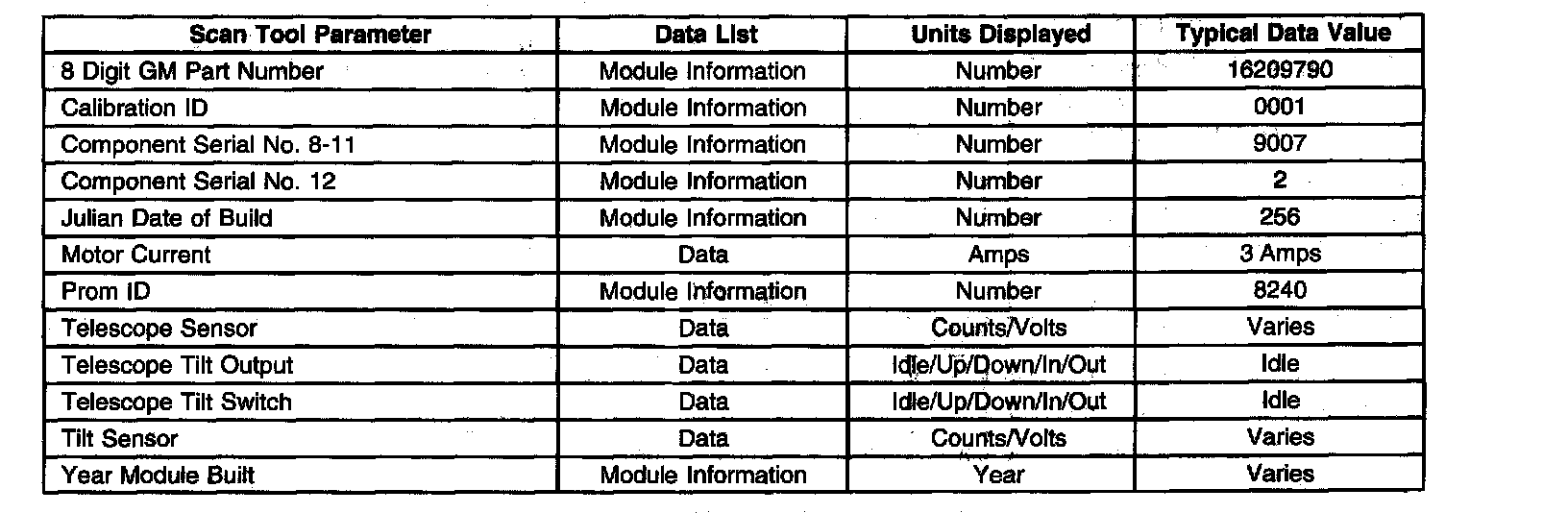 Scan Tool Data List