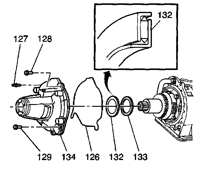 8. Apply pipe thread sealant GM P/N 12346004 to bolt threads before installation. Install the case extension bolts (128, 129).
