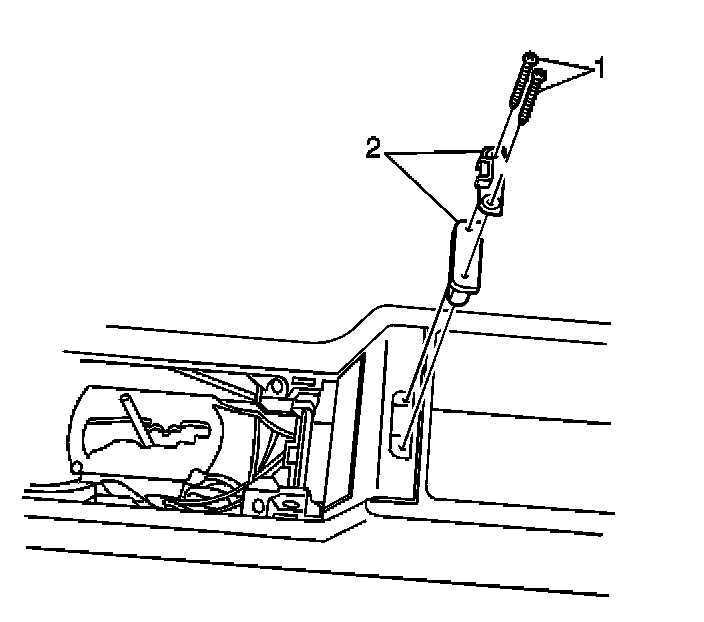 3. Remove the console door striker assembly (1,2).