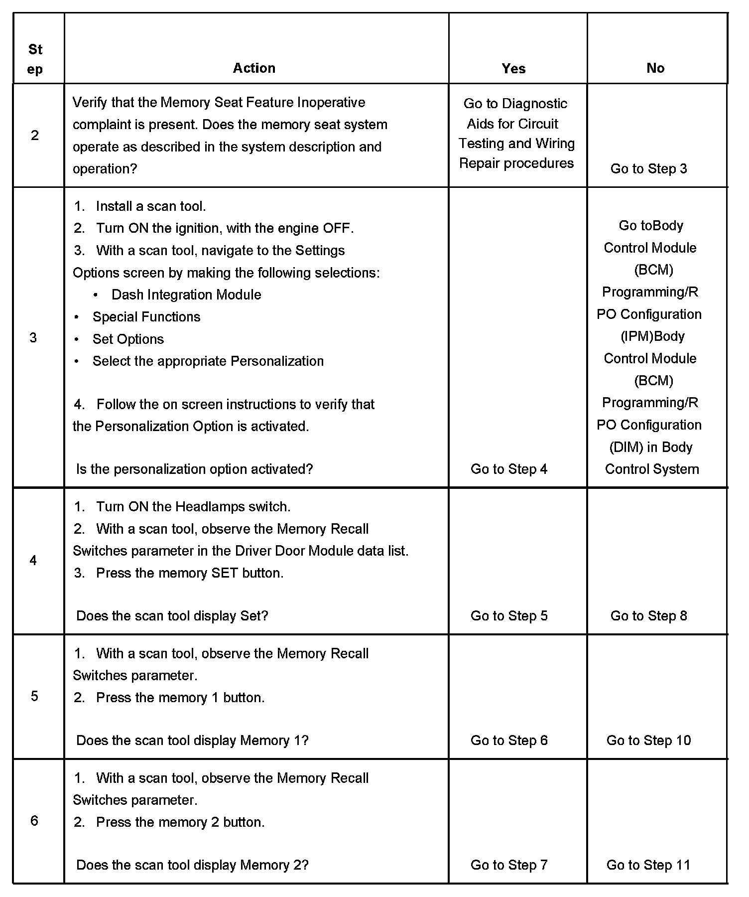MEMORY SEAT FEATURE INOPERATIVETEST DESCRIPTION