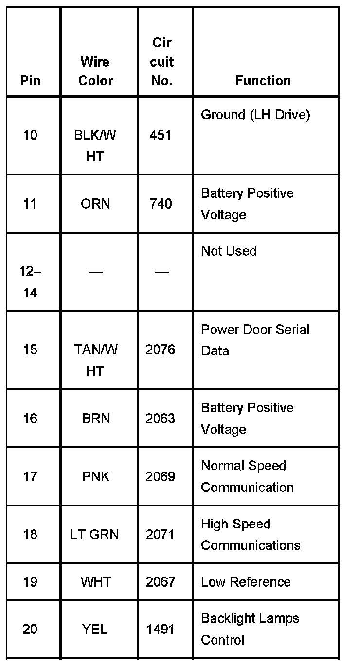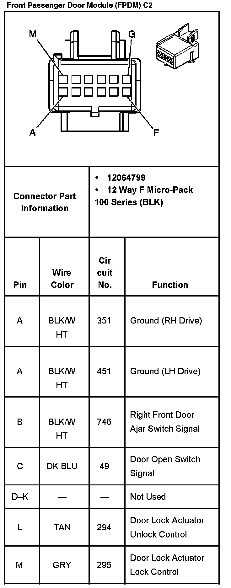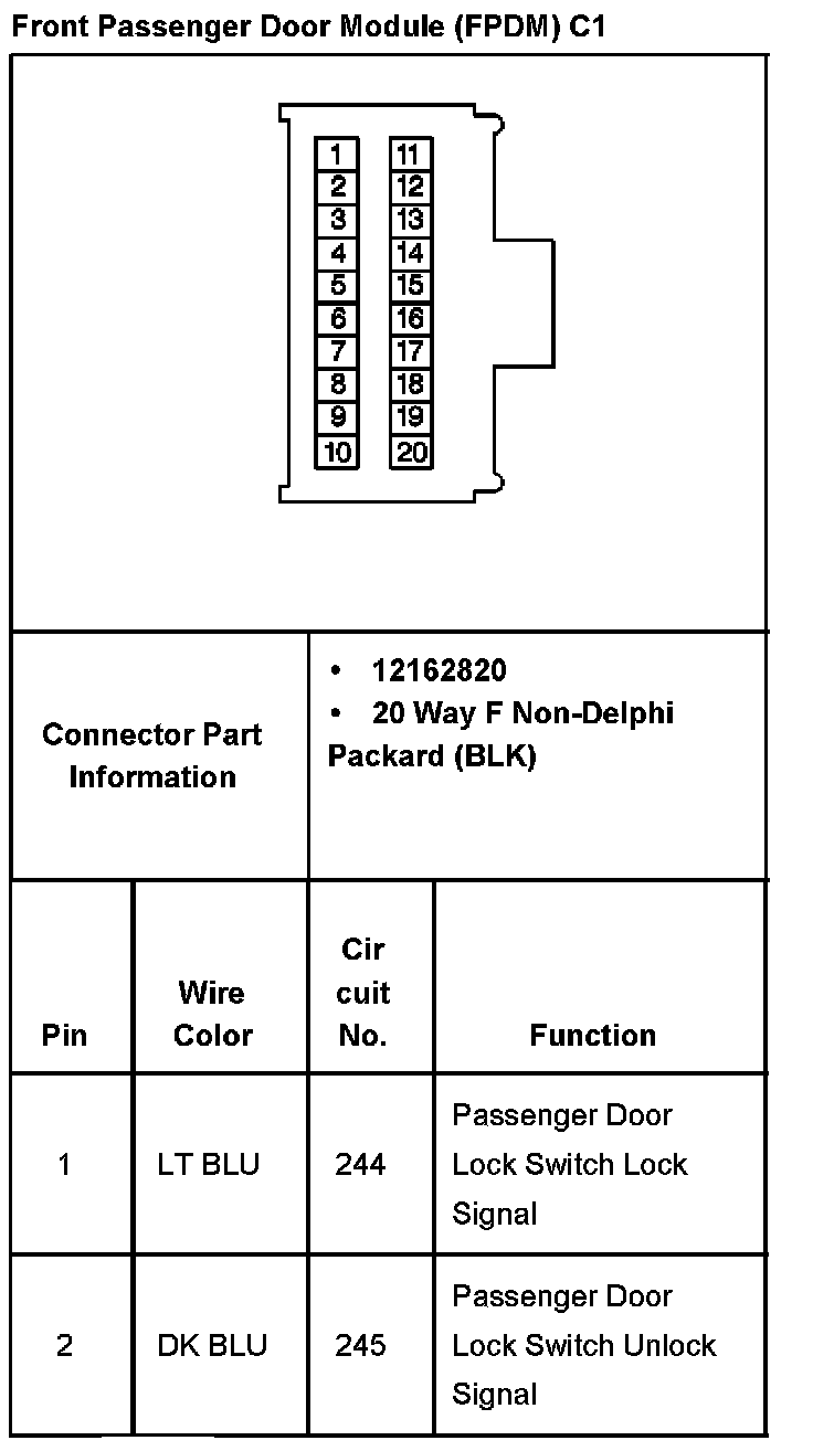 Front Passenger Door Module (FPDM) C1 Part 2: