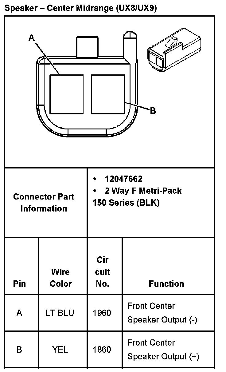 Speaker - Center Midrange (With RPO Code UX8/UX9):