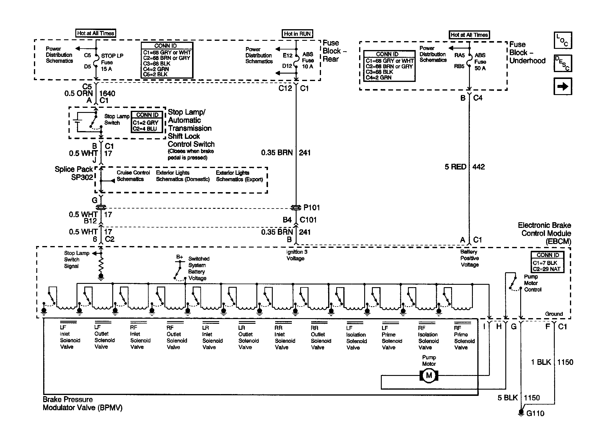 Schematic and Routing DiagramsABS Schematics (Power, Ground, Stop Lamp Switch, Solenoid Valves, and Pump Motor)