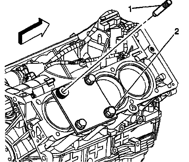 5. Remove the alignment pin (1) from the cylinder head bolt hole.
