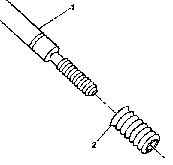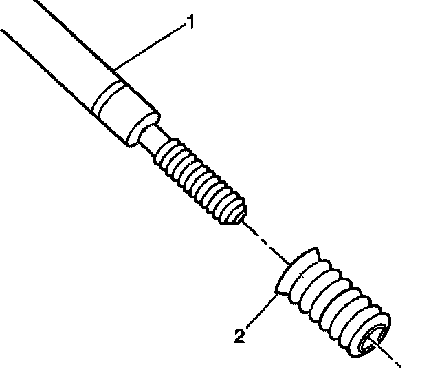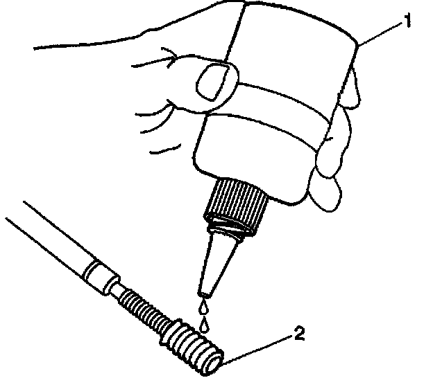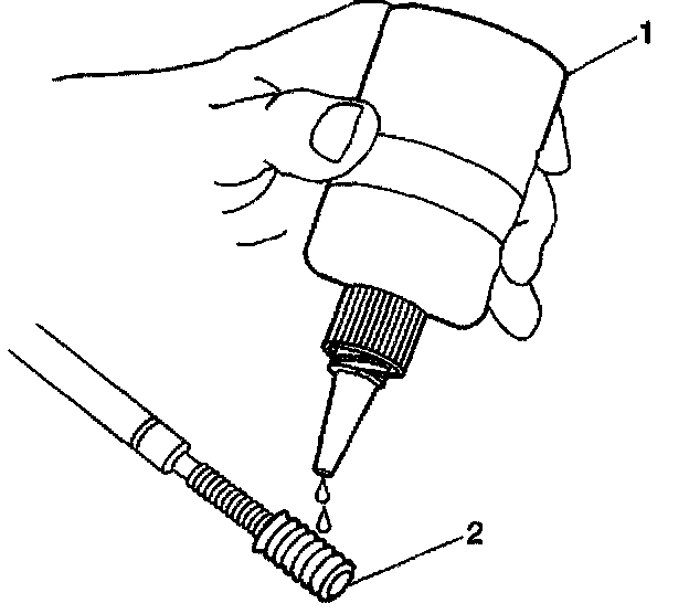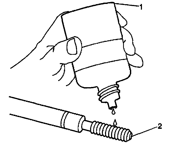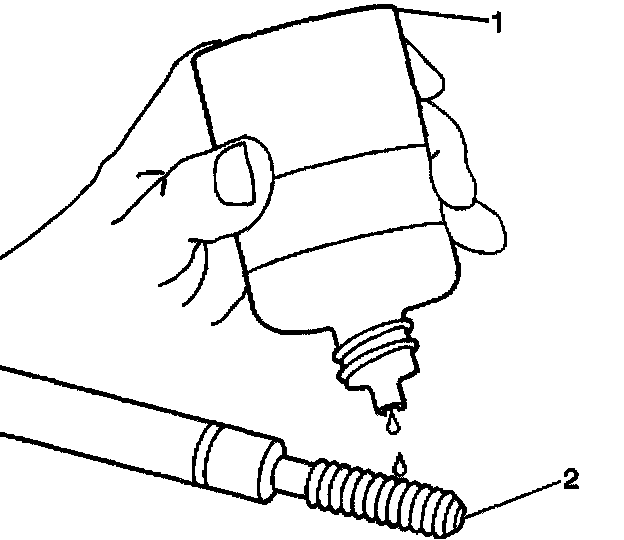 18. Apply threadlock sealant GM P/N US 12345493, Canada 10953488, J 42385-109, LOCTITE 277~, or equivalent (1) to the insert OD threads (2).