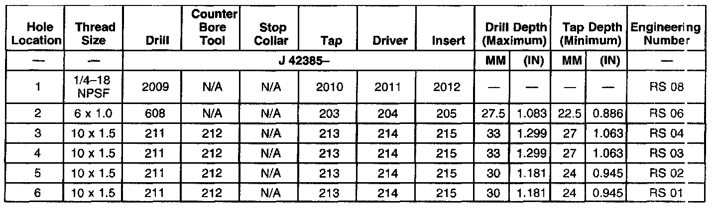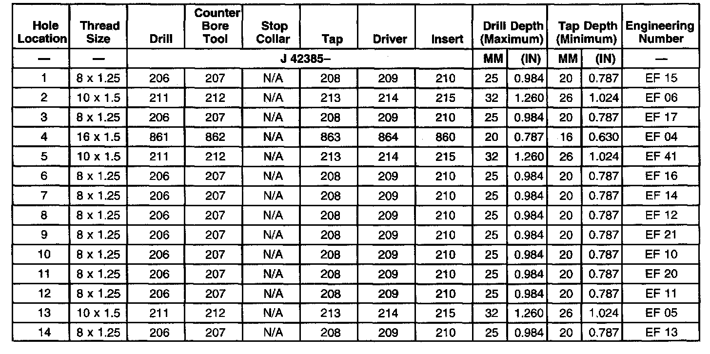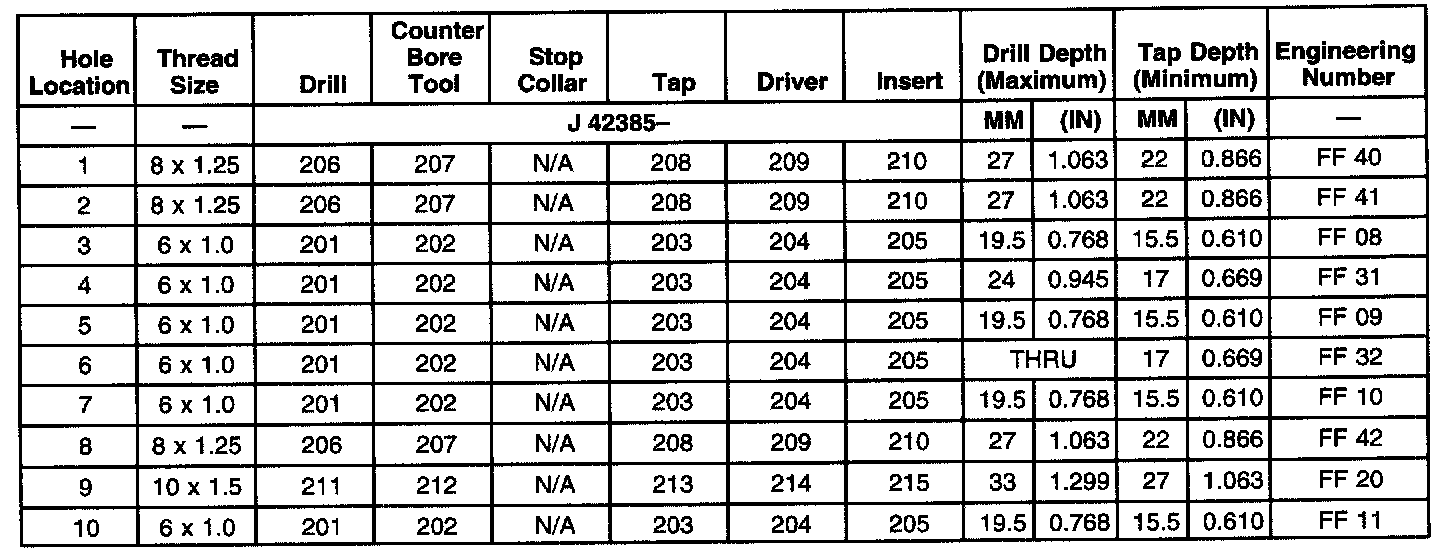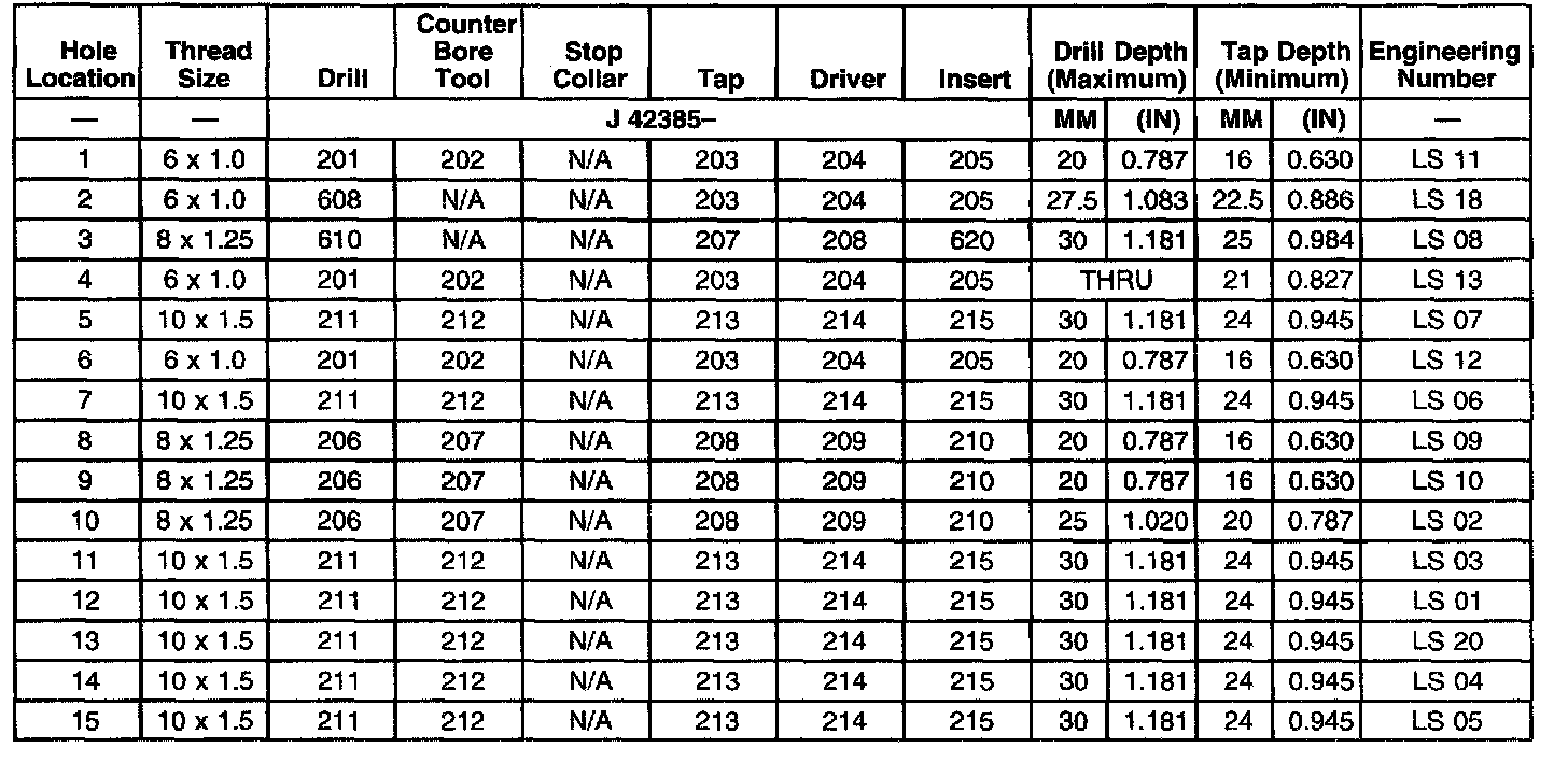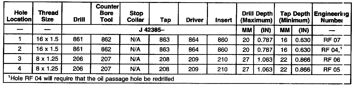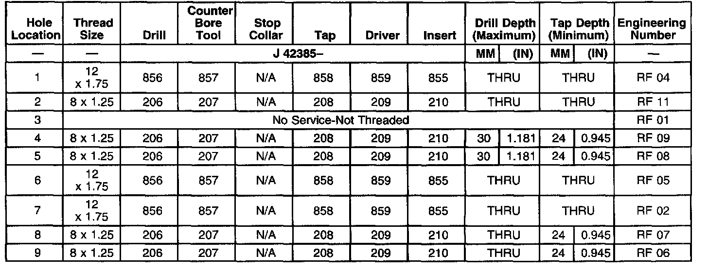 THREAD REPAIR SPECIFICATIONSLeft Cylinder Head Camshaft Cover Face