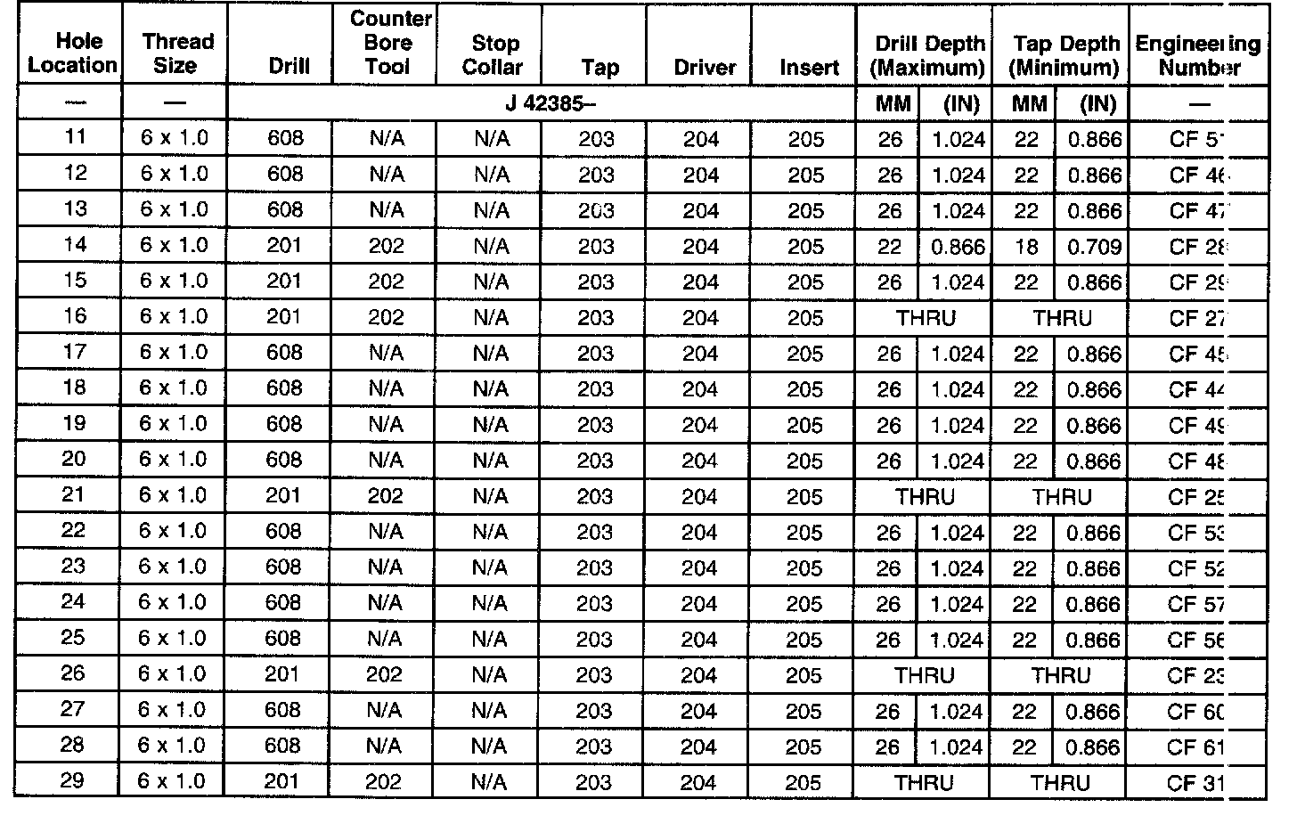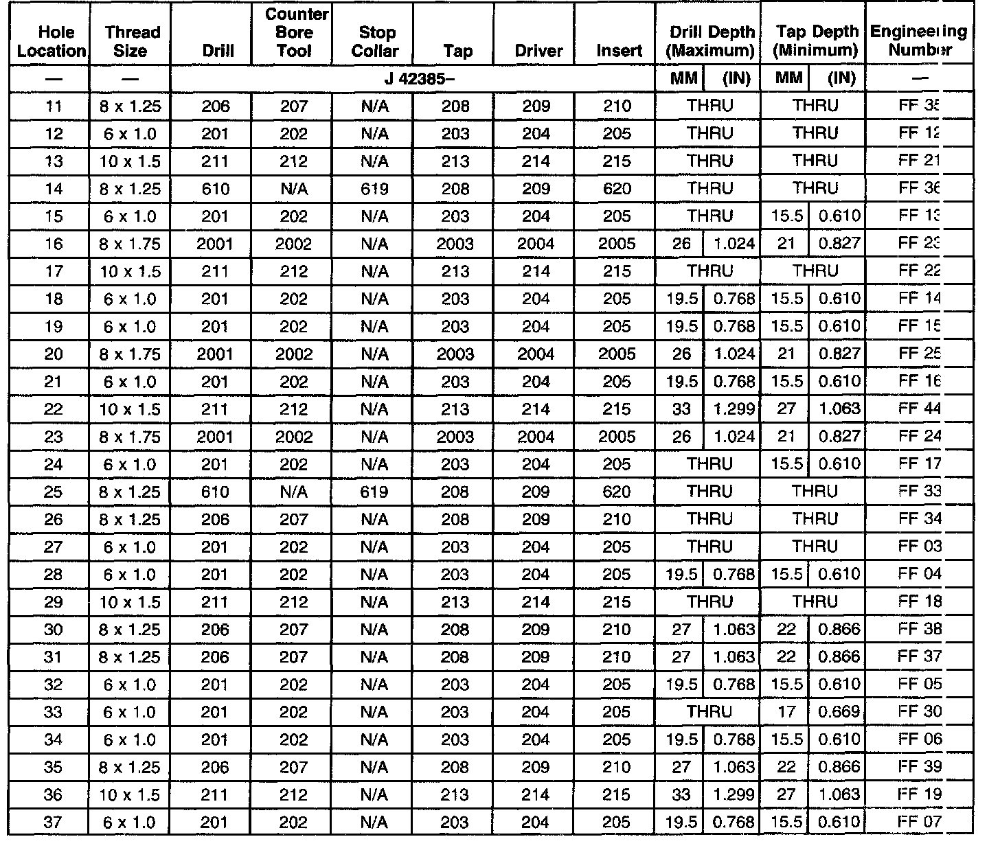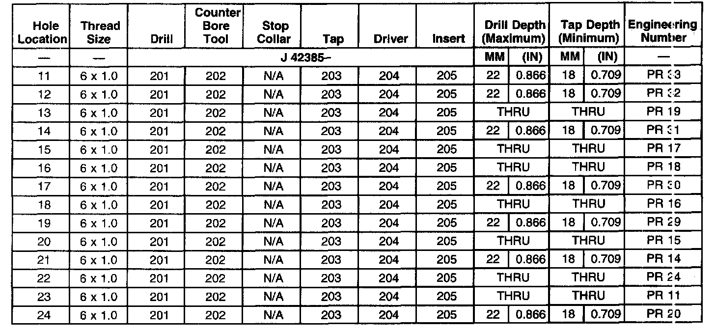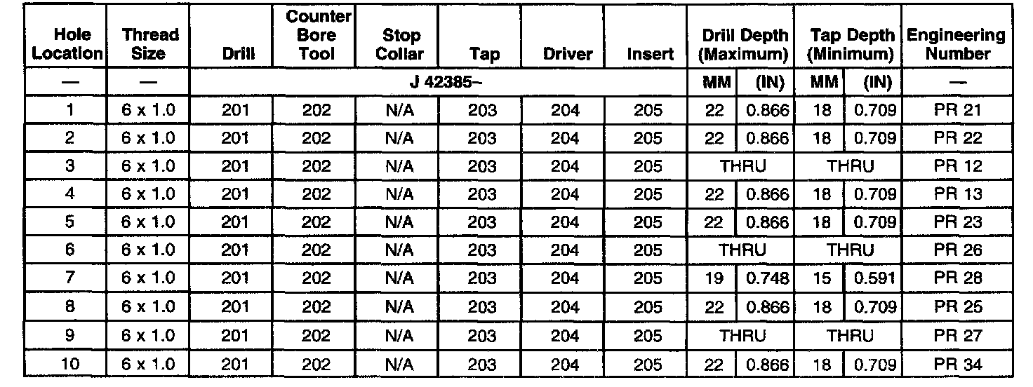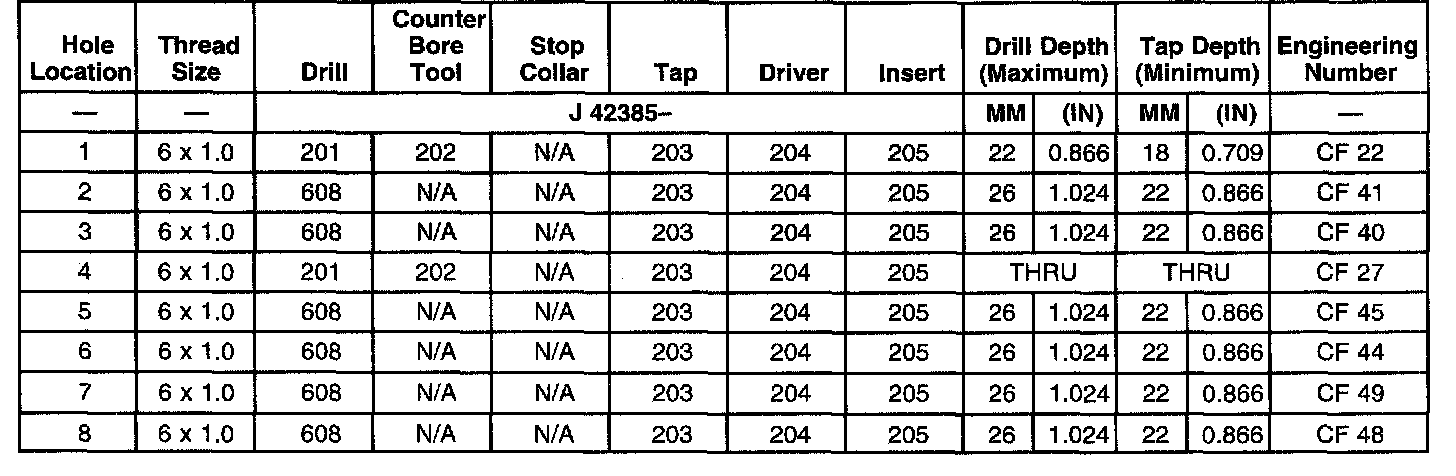 THREAD REPAIR SPECIFICATIONSLeft Cylinder Head Camshaft Cover Face