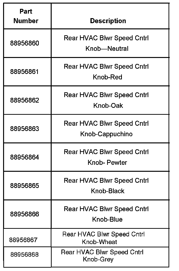Rear HVAC Blower Control Knob May Fall Off (Install New Design Knob)