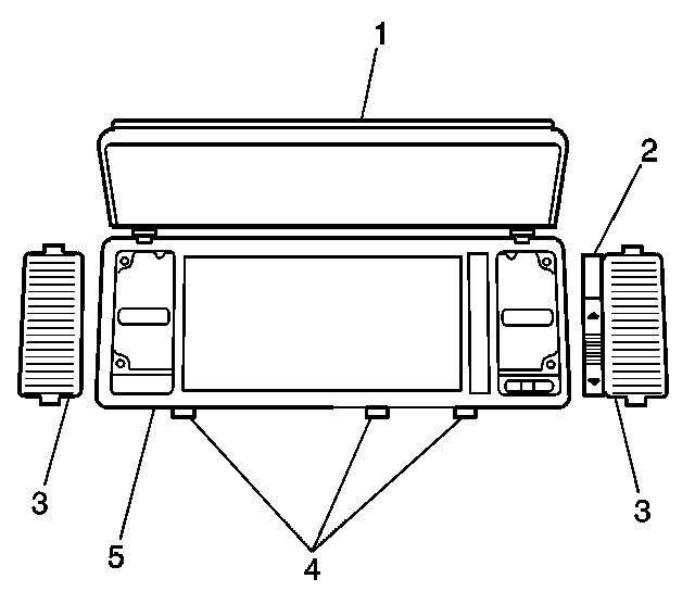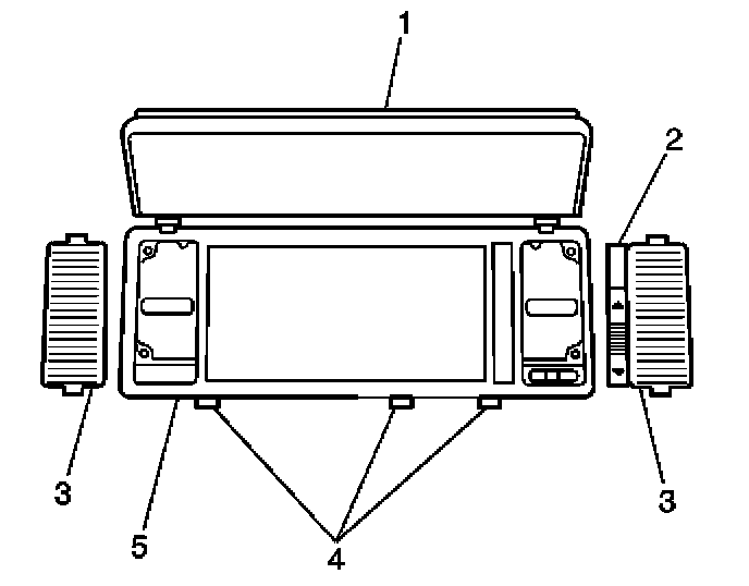 1. Open the vanity cover (1) and, using a thin-bladed tool, insert the edge of the tool under the lamp lens (3).