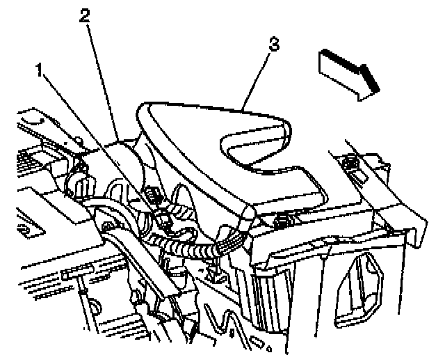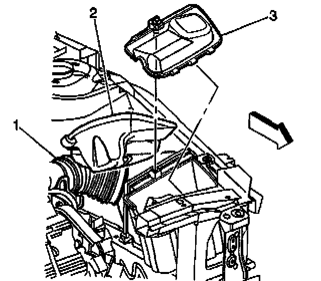 4. Remove the screw retaining the intake air duct/resonator (3) to the PCM housing.