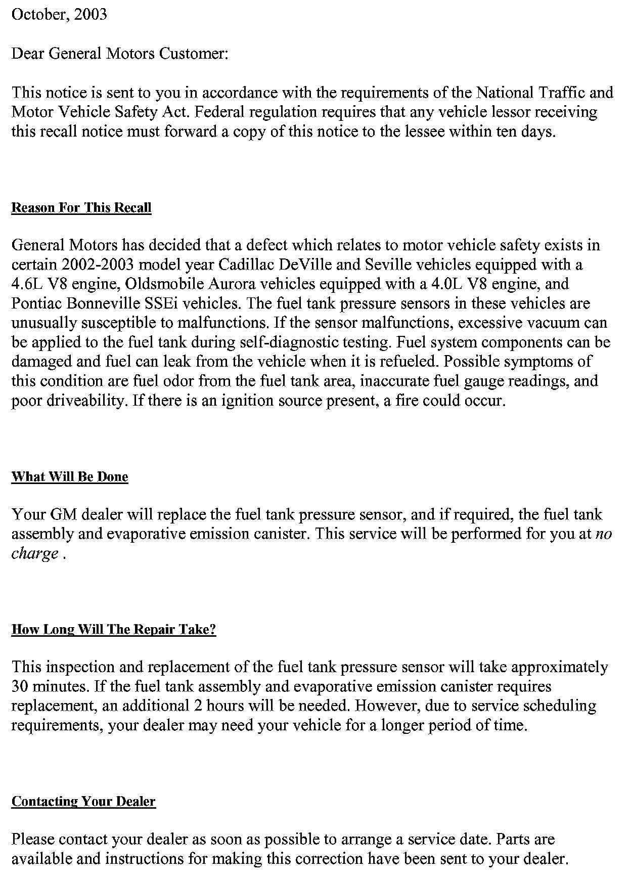 Recall - Fuel Tank Pressure Sensor Malfunction