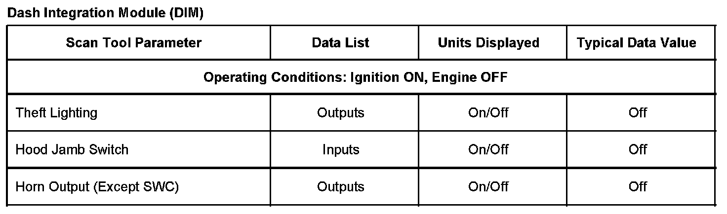 Scan Tool Data List - Antitheft System