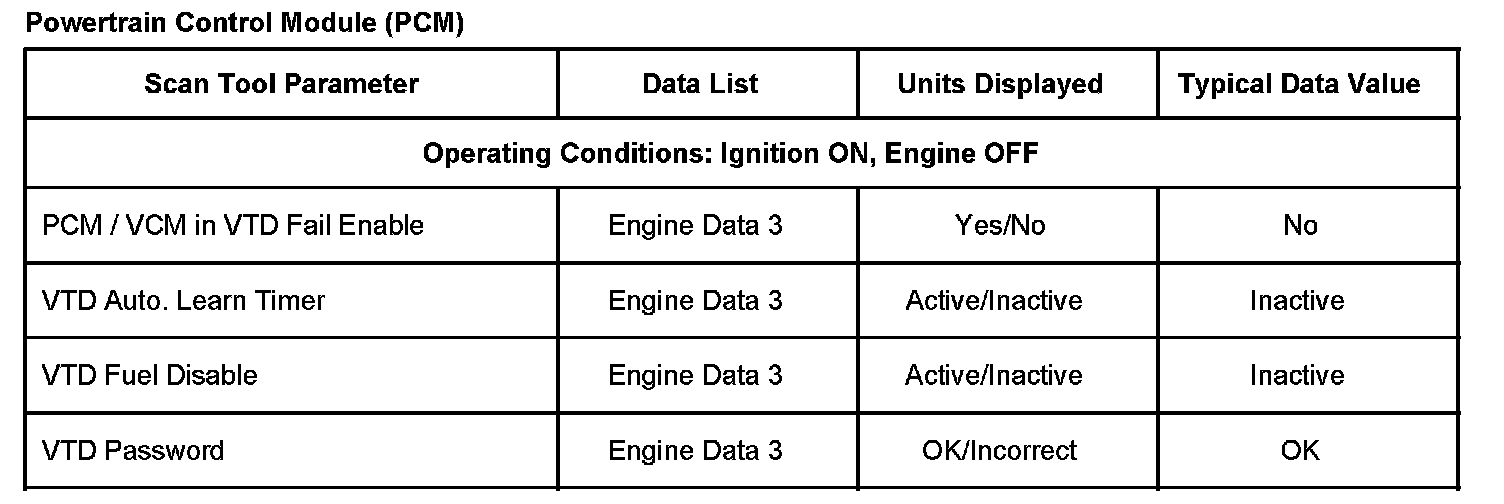 Scan Tool Data List - Antitheft System