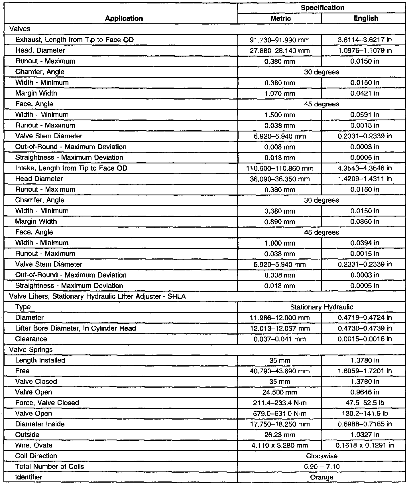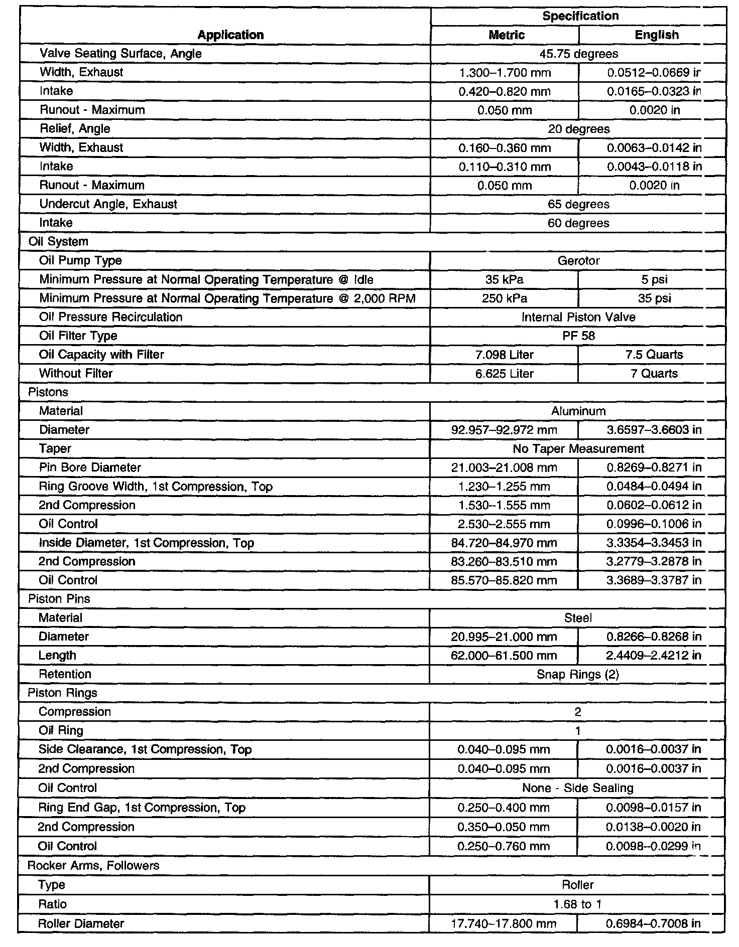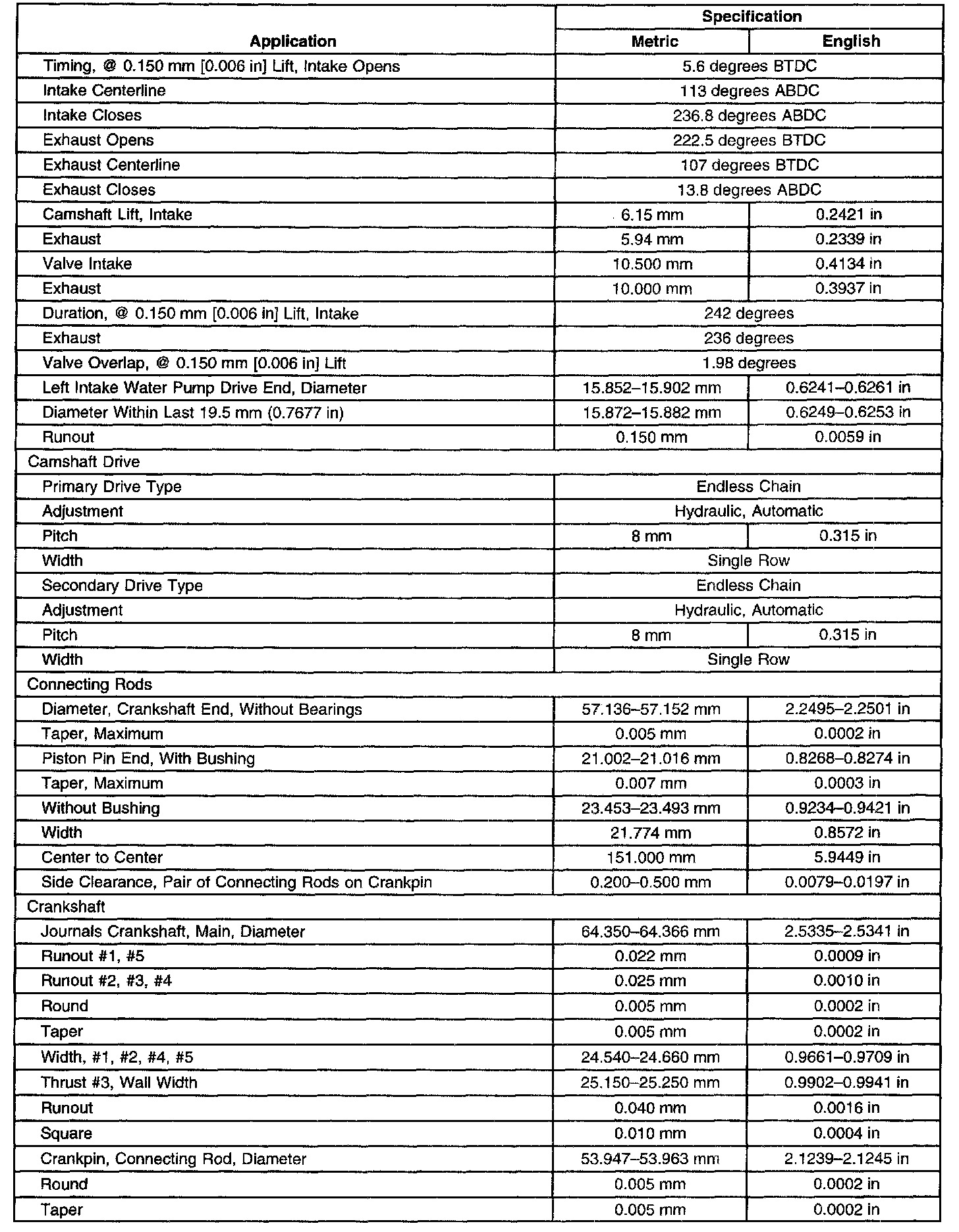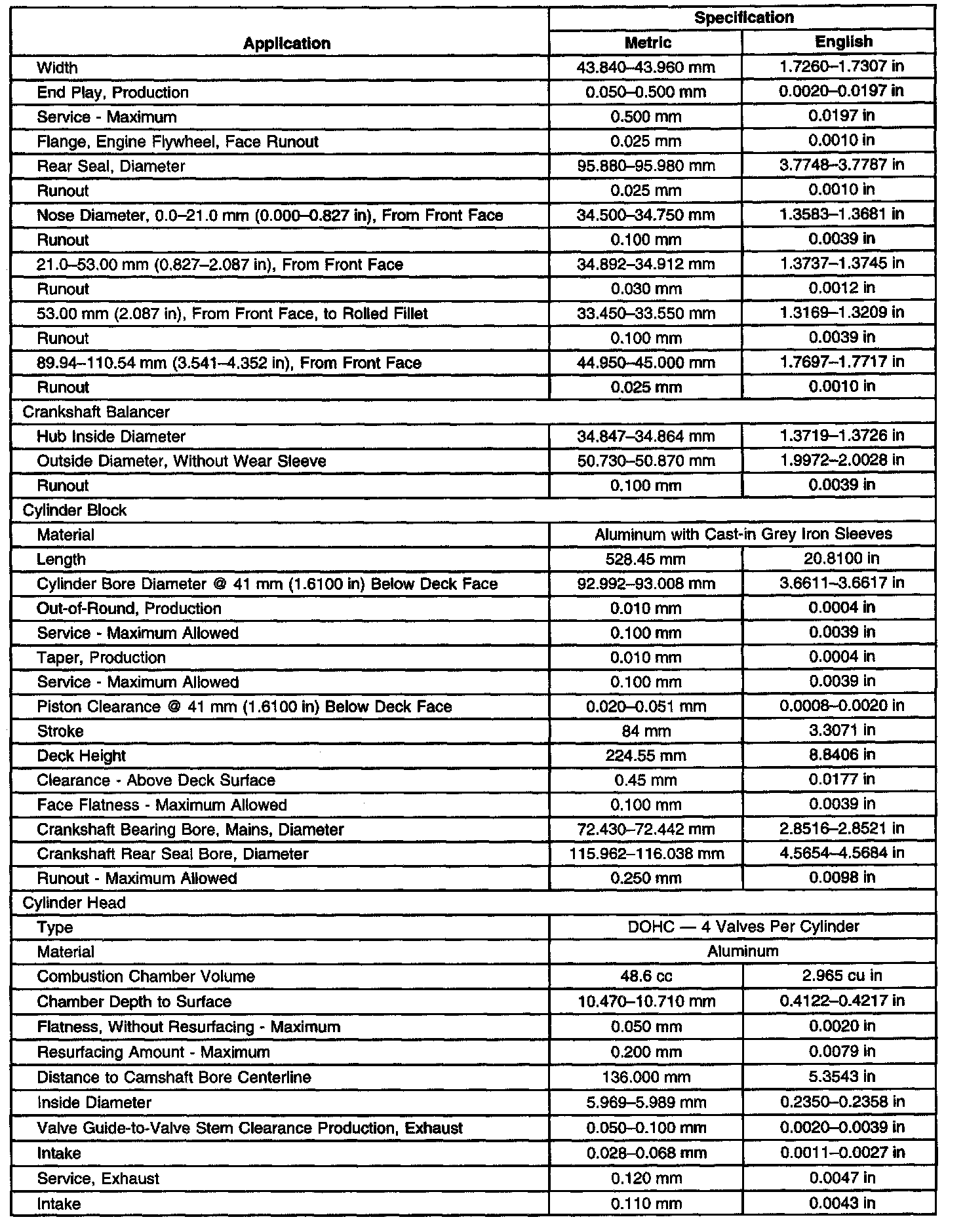 Engine Mechanical Specifications