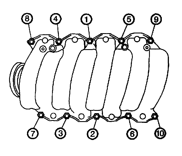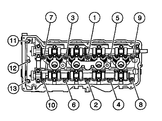 Tighten the left cylinder head M11 cylinder head bolts to 40 Nm (30 lb ft) in the sequence shown.