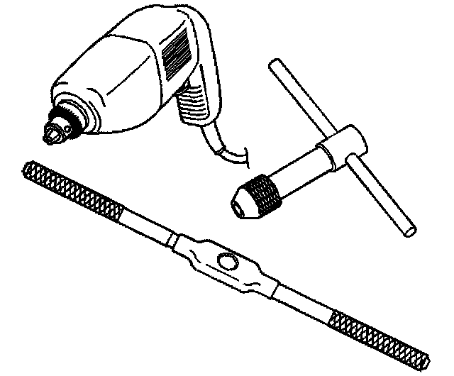 The tool kit J 42385-200 is designed for use with either a suitable tap wrench or drill motor. Limited access and larger hole repair may process better using a tap wrench. An extension J 43965 may also be necessary to drive the thread repair tooling dependent on access to the hole being repaired.