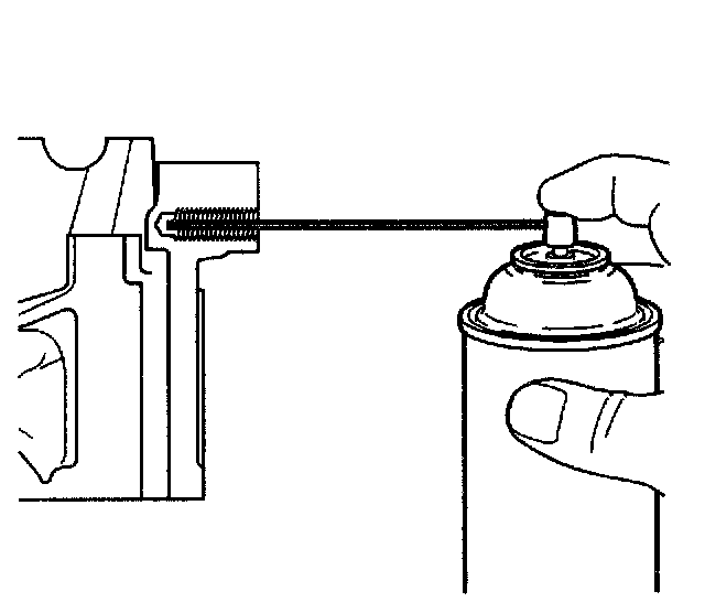 7. Spray cleaner GM P/N 12346139, P/N 12377181 or equivalent into the tapped hole.