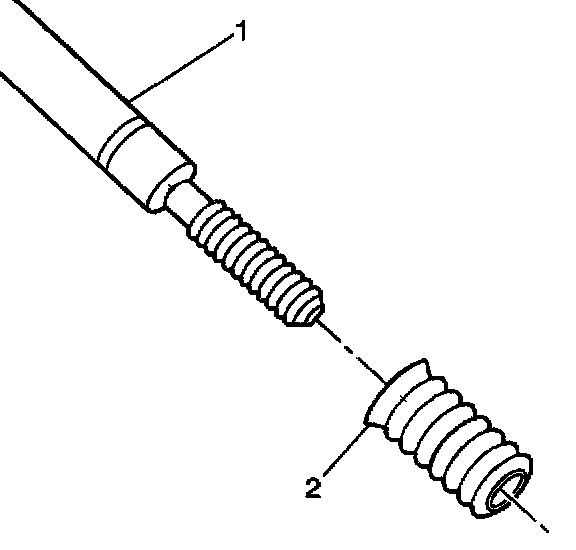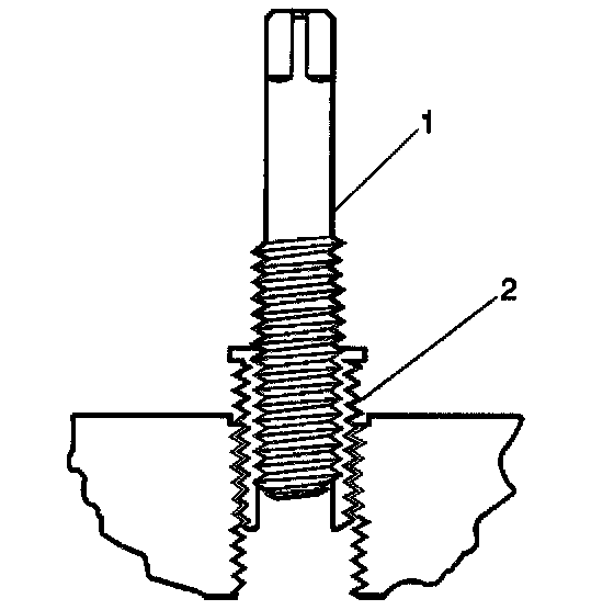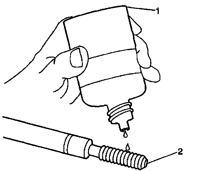 11. Apply threadlock sealant GM P/N US 12345493, Canada 10953488, J 42385-109, LOCTITE 27700 or equivalent (1) to the insert OD threads (2).