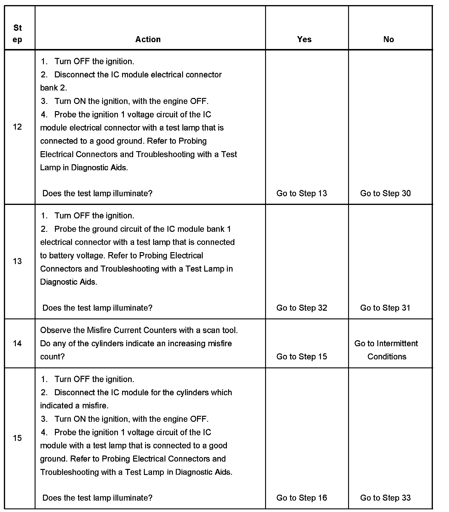 - This Electronic Ignition (EI) System diagnostic table assumes that the vehicle battery is fully charged. Refer to Battery Inspection/Test in Starting and Charging. Battery Inspection/Test