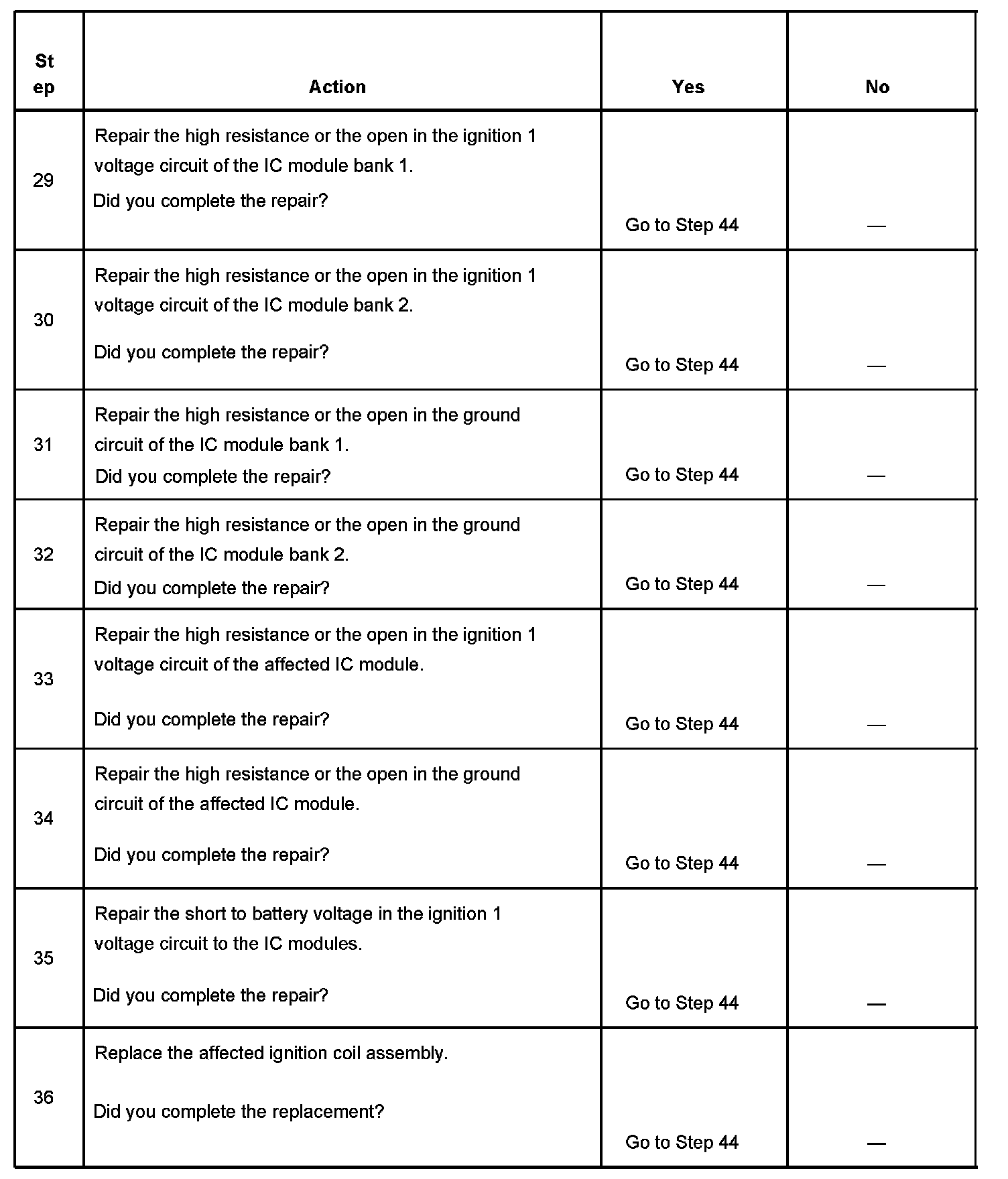 - The IC circuits for cylinders 1, 3, 5, 7 on bank 1 ignition module