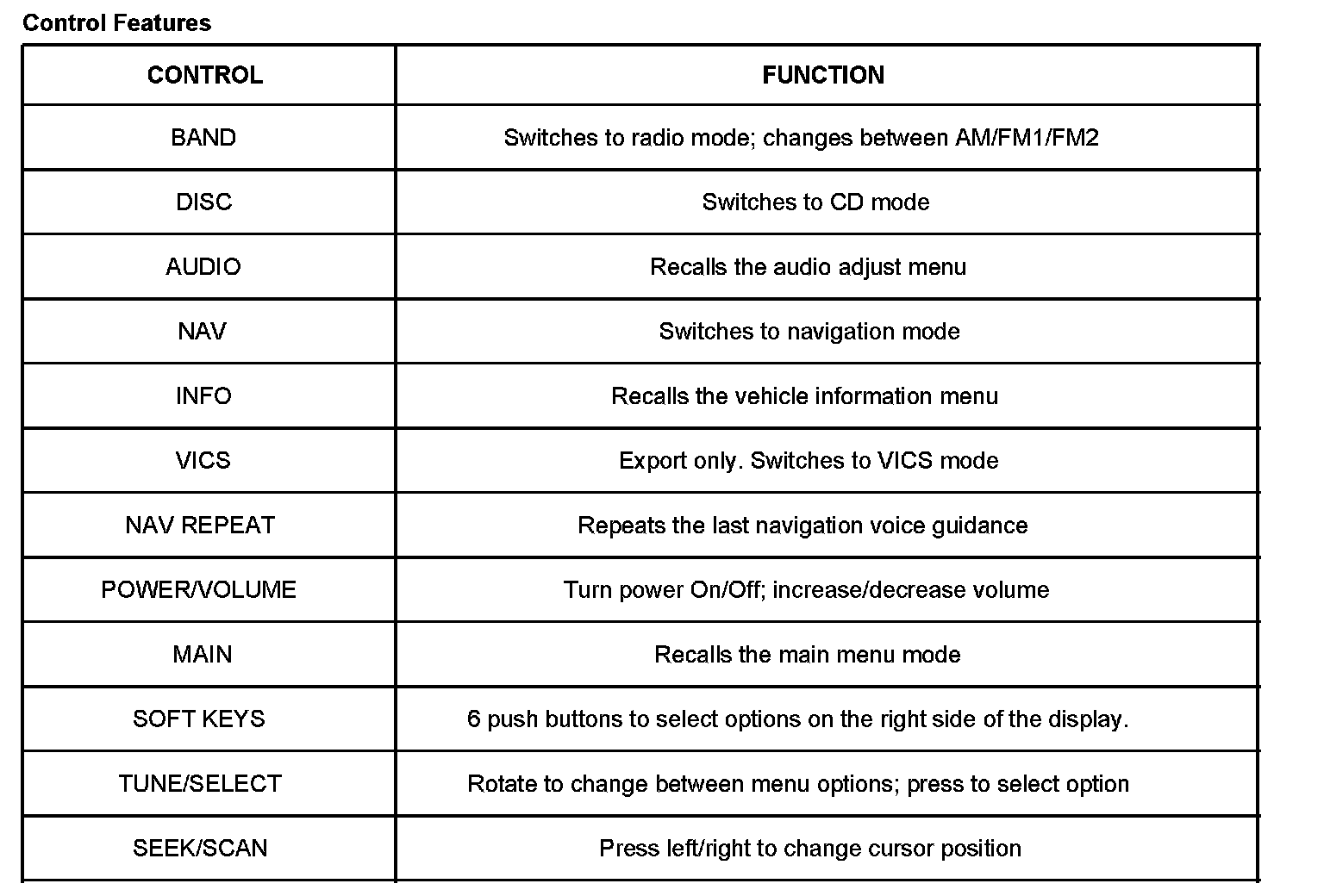- Soft keys on the right side of the display to allow selection from menus and to operate the navigation system, the audio system and the (export) TV system.